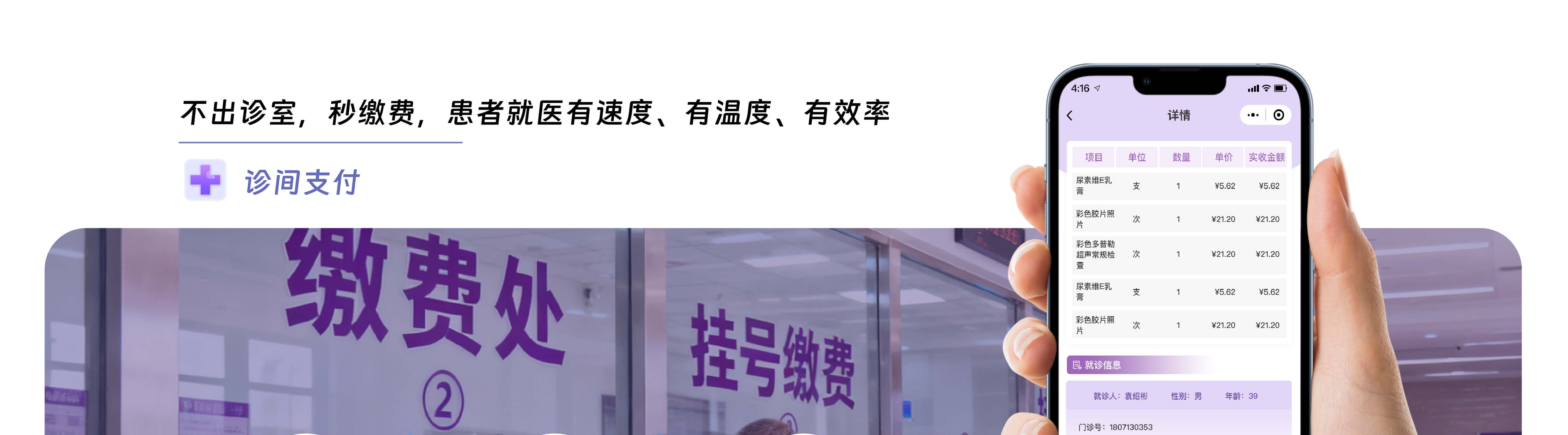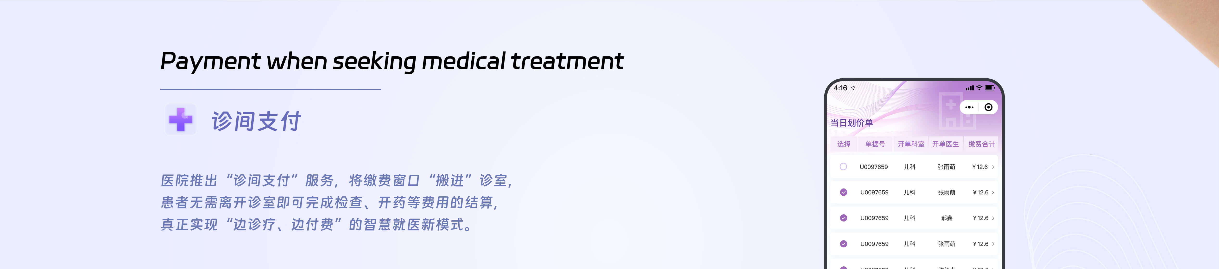 设计理念:医院推出“诊间支付”服务,将缴费窗口“搬进”诊室,患者无需离开诊室即可完成检查、开药等费用的结算,真正实现“边诊疗、边付费”的智慧就医新模式。